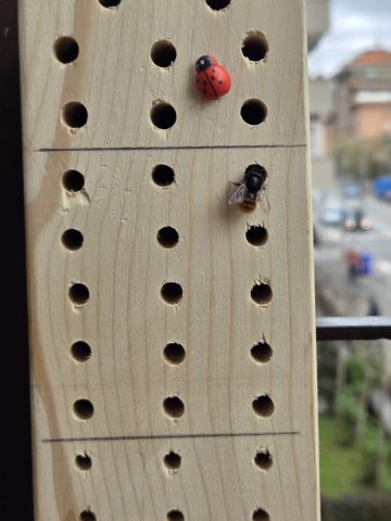 In città, la presenza di siti naturali è sempre più limitata. La cementificazione crescente, potature frequenti e assenza di legno morto sono tutti fattori che riducono drasticamente le opportunità di nidificazione per le api solitarie. Per questo i bee hotels del progetto, ispirati alla natura, sono realizzati in legno con fori di diverso diametro, imitando le cavità naturali in cui queste api nidificano e offrendo loro un sito urbano di nidificazione.