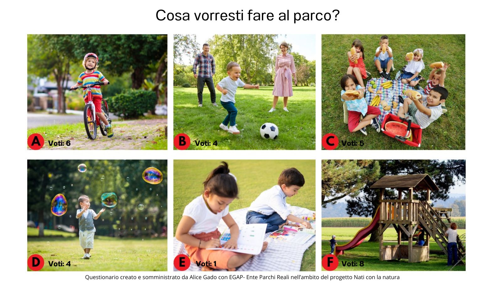 Concludiamo questa rapida indagine con le attività praticabili nel verde mostrate ai bambini e con i relativi voti