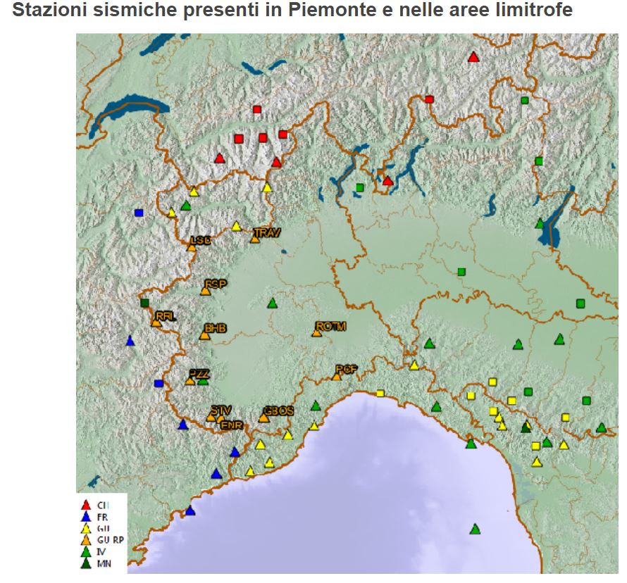 In Piemonte, inoltre, esistono due stazioni gestite direttamente dall'INGV (Istituto Nazionale di Geofisica e Vulcanologia). I dati della nostra regione sono misurati con un buon grado di dettaglio a partire dal 1982.