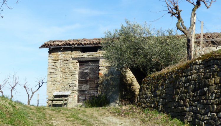 Dopo aver ascoltato il respiro della Terra, che qui è Madre e insieme Donna da fecondare: "Sempre, ma più che mai questa volta, ritrovandomi davanti e in mezzo alle mie colline, qualcosa mi sommuove nel profondo. Devo pensare che immagini primordiali sono dischiuse in questo luogo, e tutto ciò mi dà un senso di straordinaria potenza, come se nascessi ora, dentro l'immagine assoluta di queste cose", si può scendere fino alla frazione Ca' del Monte.