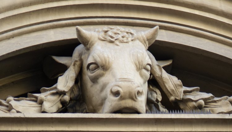 Altri trenta torelli fanno capolino sulla bella facciata della Cassa di Risparmio in via XX Settembre 31, in compagnia di un incredibile sciame di api scolpito nella pietra a simboleggiare il concetto stesso di "risparmio".