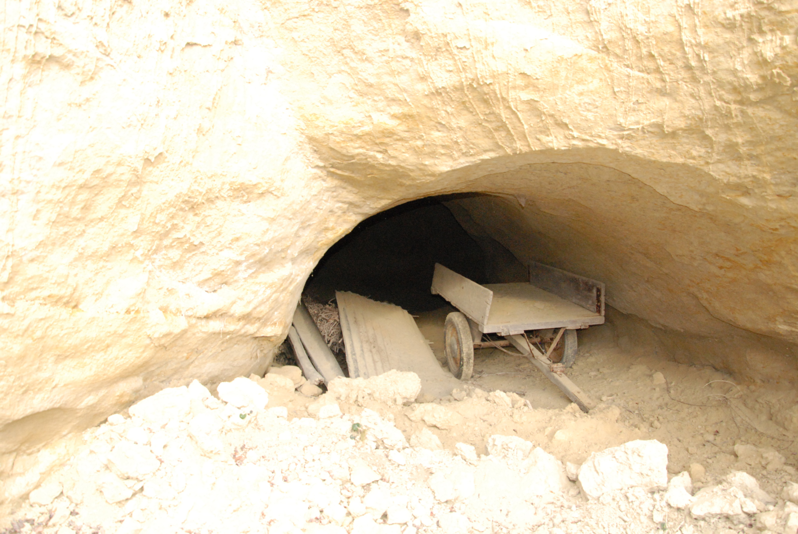 che ha alle sue spalle un anfratto scavato nella friabile roccia sabbiosa