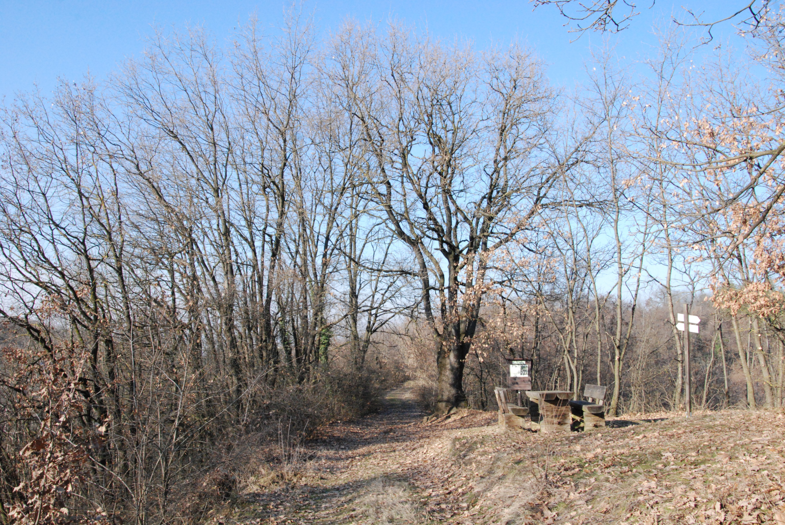Lasciato questo punto si prosegue in salita, duque tenenendo la destra al bivio che si trova appena dopo l'area attrezzata, guidati dalla segnaletica che indica la direzione di Vinchio (32 minuti). Stessa scelta si ripete al successivo bivio dove si trascura nuovamente la via che a sinistra tende a scendere, per proseguire invece in salita.