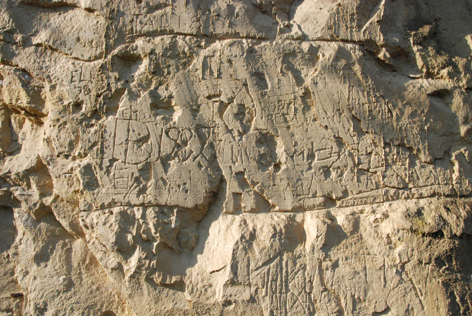 . Una tentazione per i più lasciare traccia del proprio passaggio con l'incidere nomi e lettere su queste pareti facilmente incisibili