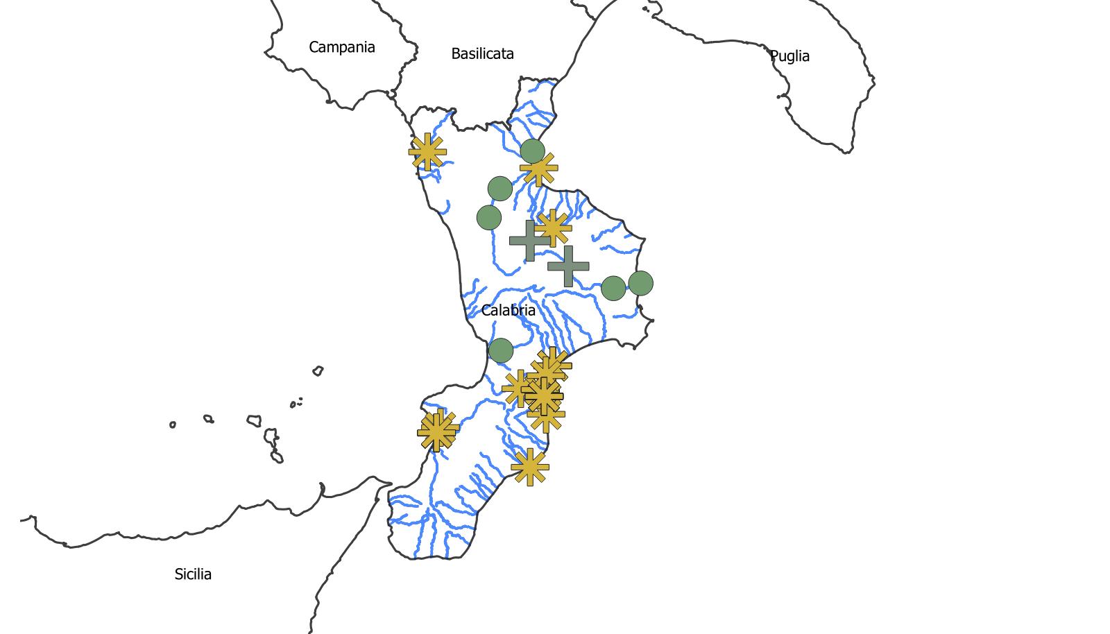 È ampiamente diffuso in Calabria, come risulta in questa rappresentazione cartografica