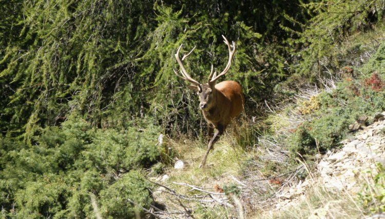 È il bramito del cervo (Cervus elaphus), il verso che il re della foresta, coronato da possenti palchi, emette nella stagione riproduttiva.