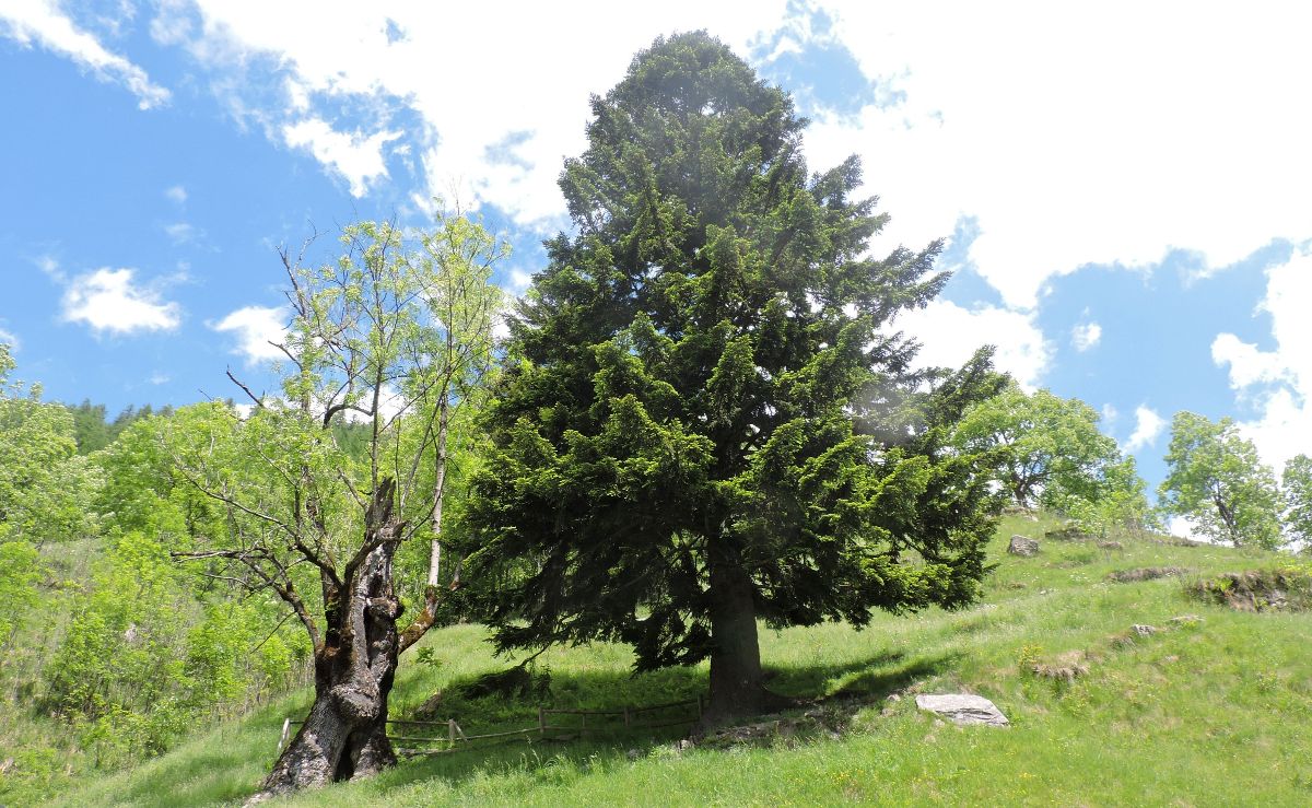 alto 17 metri e con una circonferenza del fusto di 320 cm, e quello di Carcoforo (Vc), che si trova affiancato ad un grande abete: