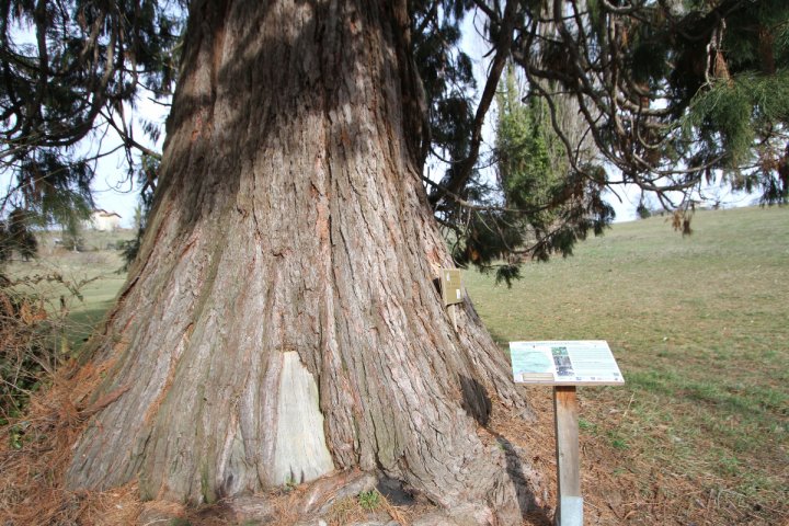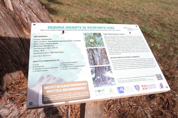 Le grandi sequoie del Piemonte erano note, già documentate, alcune, nel volume pubblicato dalla Regione Piemonte e elencate nel già corposo elenco regionale degli alberi monumentali redatto dal Corpo Forestale. Fui quindi meravigliato di individuare, al di fuori dell'abitato di Vicoforte, località del territorio monregalese nota anzitutto per l'imponente cupola ellittica – pare addirittura nel suo genere la più ampia del mondo – del Santuario che domina il centro abitato, una chioma molto alta. Ero da poco rientrato dalla California e quindi avevo allenato lo sguardo nel riconoscere la chioma di una sequoia, dotata di una colorazione unica anche tra le chiome degli alberi che conserviamo nei nostri giardini.