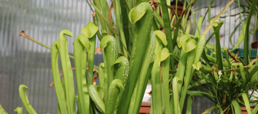 Tre serre a clima differenziato, nella parte alta del giardino, ospitano numerose ed interessanti specie succulente e carnivore esotiche di climi caldi, ma anche alcune italiane, come pinguicole e drosere, oltre ad altre specie rare che vivono nelle acque correnti dei fossati di pianura.