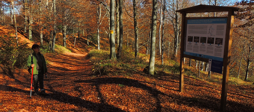 Il sentiero, quindi, inizia una risalita sempre nel bosco di faggi e piegando decisamente a sinistra con una breve discesa, riporta alla strada asfaltata. Si costeggia la torbiera dei Laioni percorrendo un tratto del Sentiero natura, poi ci si ritorna sull'asfalto e in breve al punto di partenza.
