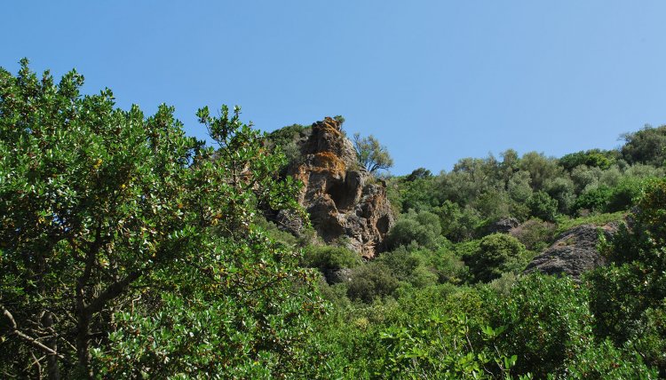 "La sommità della precipite falesia rossastra è ammantata da una coltre verde con predominanza di lecci, filliree e altre specie tipiche della macchia mediterranea mentre il piano arboreo della piana sottostante è dominata da una formazione di roverelle ormai vetuste, maestose, stanche, perlopiù mutilate dal tempo e dalle intemperie nonché dalle avide e non disinteressate attenzioni delle genti... Viene quasi da raccogliersi in silenzio al cospetto di questi muti testimoni del tempo, monumentali e austeri, vetusti eppure ancora vigorosi, solitari o in densa formazione, vere torri viventi, spettatori silenti di vicende antiche e sconosciute, spesso simbolo di una natura che, in un passato lontano, ha assunto un ruolo rilevante anche sotto l'aspetto magico e religioso..."