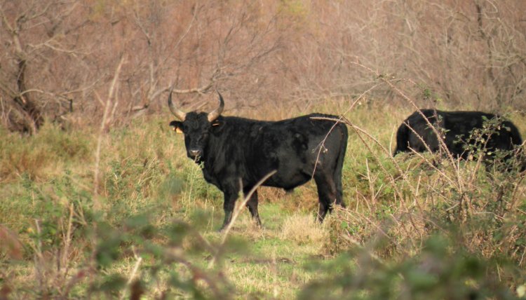 Ovviamente la Camargue sono anche i tori e i cavalli. L'allevamento brado è uno degli artefici di questi paesaggi, mantiene aperte le estese zone al confine fra le lagune salmastre e le terre coltivate, è l'unico modo per poter sfruttare i pascoli a salicornia o a graminacee che in primavera e autunno si allagano e che invece d'estate seccano disperatamente. Per questo i tori di razza Camargue sono rustici, come lo sono i cavalli.