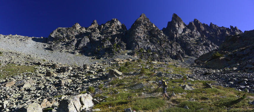 Valle Varaita-Valle Po-Valle Varaita. Tre giorni impegnativi, per camminatori con buon allenamento e abitudine all'andar per monti. Nessuna difficoltà tecnica, ma lunghi spostamenti.