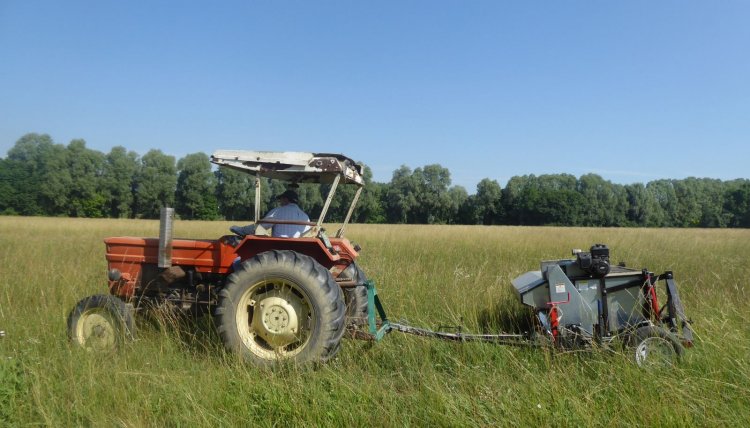 Lo strumento individuato è una spazzola rotante trainata da un trattore. La macchina agisce solamente sull'apice delle erbe, passa e non le danneggia, asportando una piccola porzione di infruttescenze: la perdita di biomassa è lieve. Lonati spiega che "la macchina, che in realtà è un prototipo, è stata sperimentata dalla cooperativa agricola Agriservizi di Vinovo e in un prossimo futuro potrà raccogliere la semente dai siti donatori su richiesta dei potenziali committenti, svolgendo, grazie ai suoi soci, attività di contoterzista sull'intero territorio regionale, in questo modo la nuova filiera delle sementi autoctone avrà un unico intermediario".