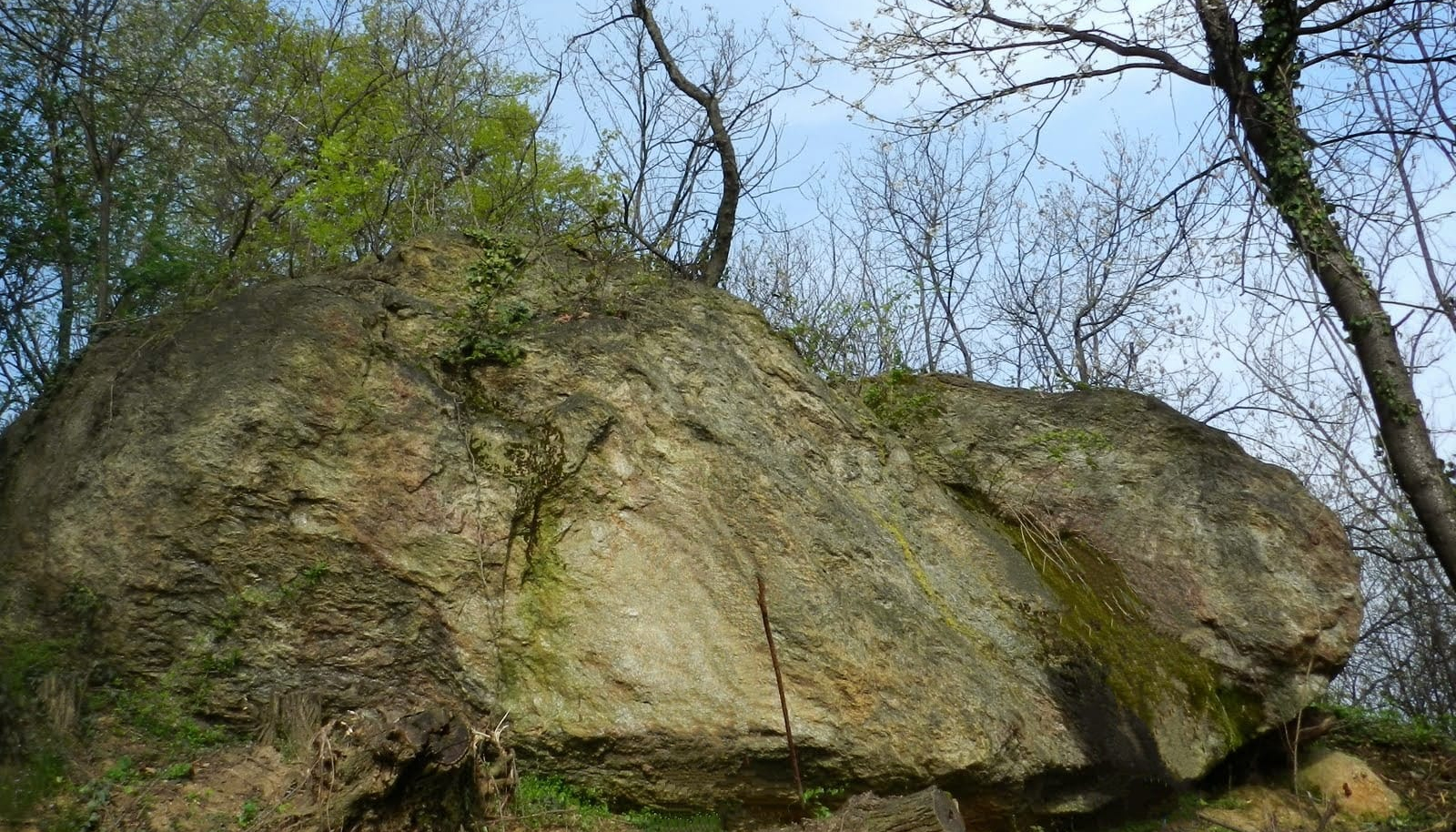 , stimato in circa 100 m3, affiorante su terreno privato, ma raggiungibile con una piacevole passeggiata su una strada vicinale, è una roccia metamorfica la cui origine e natura è verosimilmente afferente ai paragneiss e micascisti della Zona Sesia Lanzo, unità metamorfica affiorante tra la Valsesia e la Val di Lanzo. Probabilmente l'origine del masso è dalla zona compresa tra Quincinetto e Valperga, settore montuoso dove affiora questa unità Geologica.