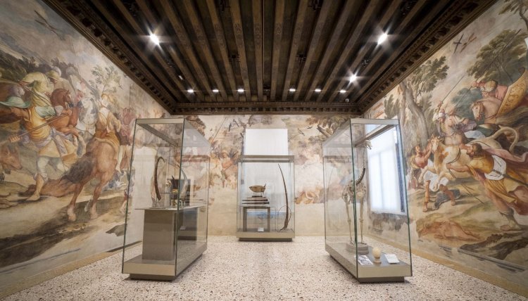 Il Museo della Natura e dell'Uomo ha sede nel complesso di Palazzo Cavalli, realizzato intorno alla metà del '500 dall'omonima famiglia veneziana e negli ultimi 150 anni ampliato e profondamente rinnovato dall'Ateneo patavino. All'interno del palazzo nobiliare il sontuoso apparato decorativo, che fa da suggestiva quinta scenografica alle collezioni vallisneriane, risale alla seconda metà del '600 e risulta debitore del coevo gusto per la meraviglia. Il portego passante del pianterreno, affrescato con episodi delle Metamorfosi, consente l'accesso alla Sala della Caccia: la scena della caccia allo struzzo bianco ben dialoga con lo scheletro e l'uovo di struzzo della Collezione Vallisneri qui esposti. Sul lato opposto, si aprono le Sale delle Storie Romane, con l'iconico olotipo della tartaruga liuto Dermochelys coriacea, e delle Storie Bibliche, dove la riproduzione dell'Origine della specie darwiniana invita a nuovi interrogativi sui confini tra scienza e fede. Il sontuoso Scalone nobiliare dà accesso al piano superiore, con affreschi di Dorigny: le sale sono attualmente chiuse per restauri.