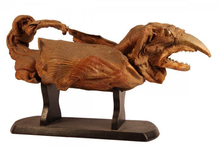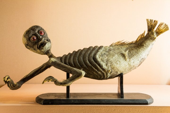 Al Museo di Venezia sono esposti due esemplari storici, la cui provenienza rimane misteriosa. Il primo, datato alla metà del XVI secolo, è realizzato con un individuo di piccole dimensioni di Squatinas quatina, in veneziano squalena. È attribuito con qualche dubbio a Leone Tartaglini di Fojano della Chiana, esperto imbalsamatore toscano che viveva a Venezia attorno alla metà del Cinquecento e possedeva un "teatro delle varie cose naturali", comprendente anche basilischi. Il secondo esemplare, di difficile datazione, inizialmente descritto come "torso di scimmia unito ad una coda di pesce", in base a recenti interventi di restauro ha rivelato una natura più complessa. È costruito con parti anatomiche animali assemblate a strutture in legno e ad altri materiali tra cui peli di mammiferi; per l'addome e la dentatura sono state utilizzate parti di pesci, mentre le unghie appartengono a un mammifero di medie dimensioni, il tutto completato da maligni occhietti rossi.