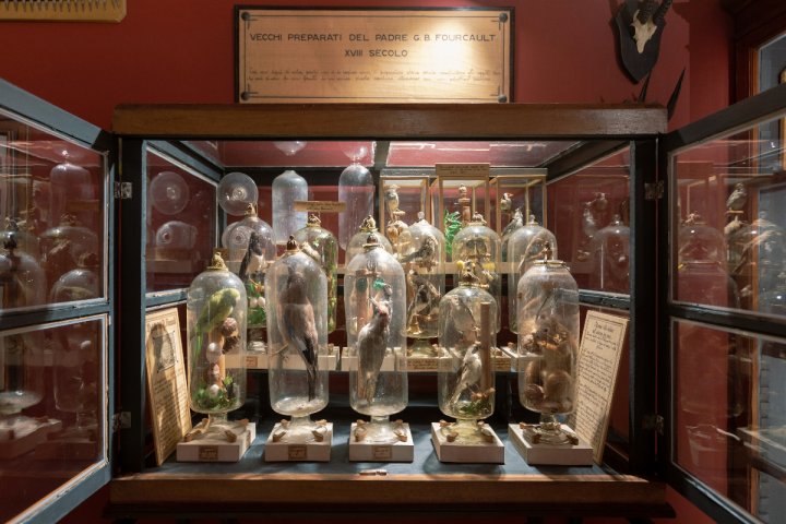 Il MUST dell'Università di Parma conserva la collezione storica di Padre Jean Baptiste Fourcault, frate e ornitologo della corte dei Borbone, risalente al 1766. La raccolta comprende 34 uccelli e un mammifero tassidermizzati, racchiusi in 11 ampolle di vetro sigillate. Queste bottiglie, con fori apparentemente troppo piccoli per l'introduzione degli esemplari, hanno da sempre suscitato mistero. Analisi moderne (radiografie, tomografie e microscopie) hanno rivelato l'ingegno dell'autore: gli esemplari, con cranio osseo e imbottiture di muschio sfagno, sono stati probabilmente compressi con coni di carta per inserirli nelle bottiglie. Gli elementi in legno e le scenografie interne sono assemblati in più parti, inserite separatamente e poi ricomposte. Le aperture reali delle ampolle sono più ampie di quanto appaia, mascherate da ghiera di vetro e cordicelle decorative. La tecnica dimostra una combinazione di tassidermia classica, modellismo e ingegno, con funzioni estetiche e ingannevoli. Le ampolle contengono anche etichette e messaggi che attestano la procedura segreta. L'intera collezione rappresenta un esempio unico di arte museale e sperimentazione scientifica del XVIII secolo, capace di sorprendere e fuorviare l'osservatore.