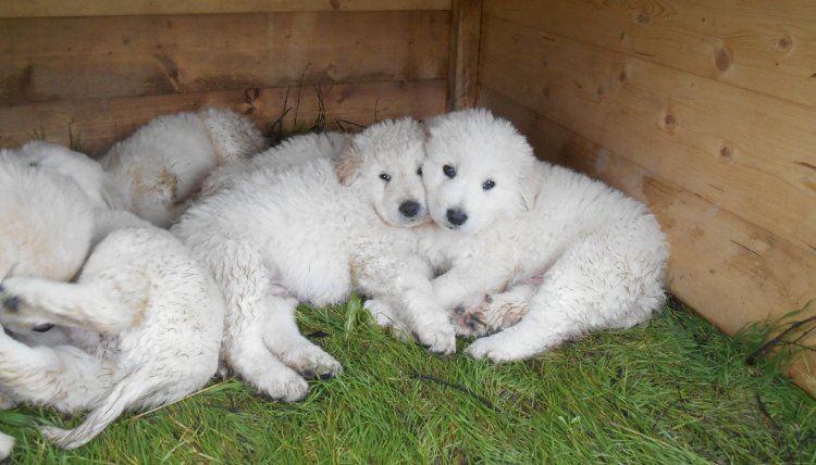 Dopo le prime chiacchiere, entriamo nel recinto insieme con il pastore e siamo in mezzo al gregge. I cani ci seguono, ci abbaiano ma non manifestano aggressività. L'unica un po' più scontrosa è Brienne, la leader, che però ha un buon motivo per essere nervosa: ha dato alla luce da poco 7 meravigliosi cuccioli che dormono beatamente in una cuccia "mobile".