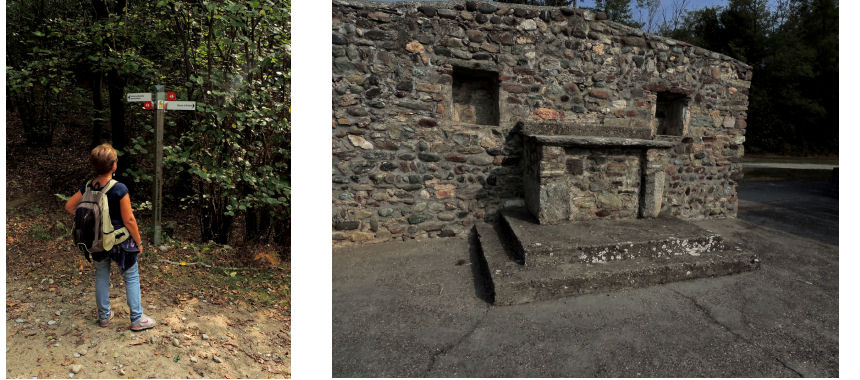 Si confluisce quindi per un breve tratto sul percorso segnato come Alta via dell'Anfiteatro morenico per lasciarlo dopo poco e salire sulla sinistra lungo la traccia che in salita conduce alla sommità del Bric dla Costa (388 m). si prosegue diritto sino ad un quadrivio /segnalazioni confuse. Si prosegue sul sentiero centrale che dapprima scende e poi risale percorrendo il ciglio del cordone morenico. Negli squarci tra gli alberi si può scorgere il sottostante lago di Viverone. Approdati al Sapel da Bras (339 m) Se si vuol proseguire per i successivi 6 Km si attraversa la strada e si continua diritto altrimenti si svolta a sinistra. Quando la strada si biforca si prende ancora a sinistra e dopo circa 700 m si ritorna alla radura del Santuario. Lungo il percorso alcune piccole bacheche illustrano le caratteristiche dei luoghi o ci informano sulla flora e la fauna inerenti la zona in cui ci troviamo.