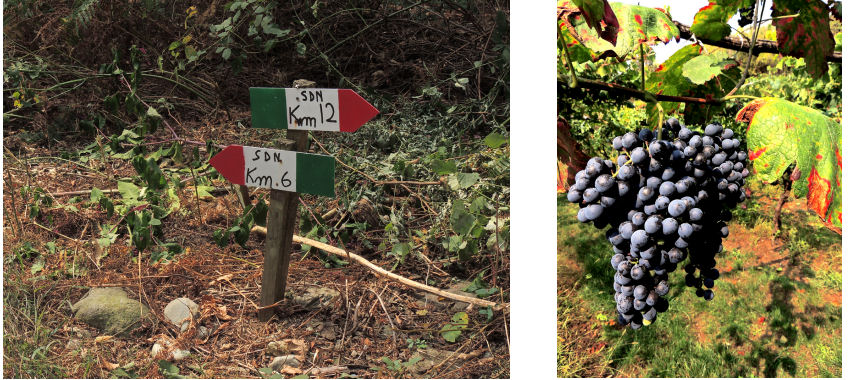 Santa Maria della Cella (311 m), la si raggiunge percorrendo la strada provinciale 43 (bivio nel centro di Borgo d'Ale) deviando verso nord su di uno sterrato che si stacca in prossimità di una curva tra la frazione Areglio e il centro Ippico. L'inizio dei sentieri è nei pressi della bacheca informativa alle spalle del campanile. Dopo un primo tratto pianeggiante di piega a sinistra e si giunge alla separazione con l'anello da due chilometri. Noi abbiamo provato quello da 6 e quindi si va a destra.Alternando tratti di sentiero a carrarecce più ampie e battute ai successivi bivi si va rispettivamente a sinistra, a destra e ancora a sinistra. Poi si piega indietro ancora a sinistra e quindi a destra passando accanto a una vigna. Il viottolo più largo termina nei filari mentre il sentiero, leggermente invaso prosegue diritto per superare l'autostrada e svoltare a sinistra.