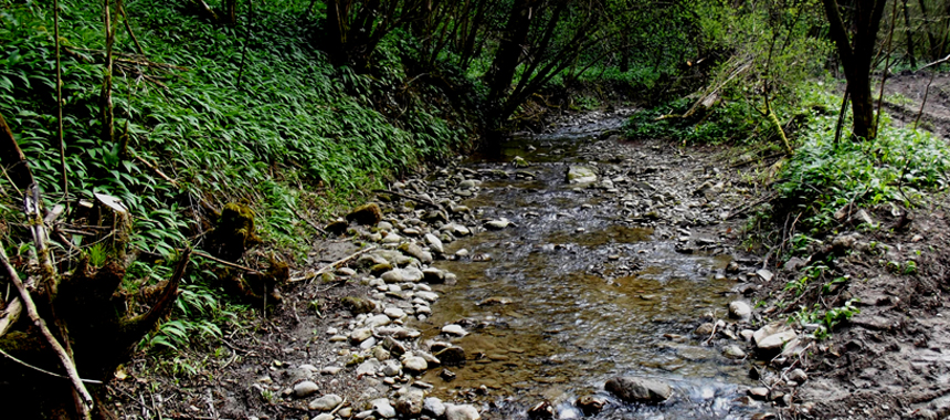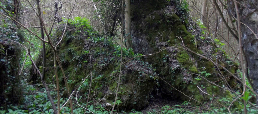 Descrizione: a piedi si imbocca la stradina e, in lieve salita, si raggiunge un primo bivio dove ci si tiene sulla sinistra accostandosi al rio Crivella. Dopo alcune centinaia di metri si incontra sulla sinistra in ponticello (palina indicatrice) oltre il quale si stacca il sentiero n. 76 che seguiremo al ritorno. Proseguendo invece per lo stradello principale si continua a seguire il fondo della valletta sull'uno o sul'altro lato del rio (e a volte nel rio stesso). In una ventina di minuti si arriva ad una nuova palina che segnala un bivio ed è collocata in un tratto della valletta dove, sulla destra, cominciano a vedersi alte scarpate di conglomerato. Si prosegue ancora sul fondovalle fino quasi al termine della pista forestale (che a volte può essere ingombra di legname e ramaglie), per imboccare poi un sentierino che se ne stacca verso destra serpeggiando tra gli alberi. Fiancheggiati una serie di blocchi di conglomerato caduti dalla scarpata si arriva alla conca chiusa dalla cascata, alla base della quale le acque cadendo hanno formato una sorta di laghetto. L'ambiente è fresco e umido e ricorda un po' l'imbocco di una grotta, con ripide pareti gocciolanti ricoperte di muschio e felci. Tornati sui propri passi si raggiunge il bivio più a monte dove si prende a destra, in salita. Un sentiero tra gli alberi dopo una decina di minuti sbocca a "T" su uno stradello più ampio lungo il quale si snoda l'itinerario 76. Prendendo sulla destra in lieve salita si esce dal bosco raggiungendo, per prati e vecchi frutteti, la panoramica sella nei pressi della quale sorge la frazione tetti Francesi. Per tornare al punto di partenza potremo ora percorrere integralmente in discesa l'itin. 76, tralasciando evidentemente la diramazione per la cascata e raggiungendo il ponticello sul rio Crivella dal quale, per la via già percorsa all'andata, si fa ritorno a strada Valle Garavaglia