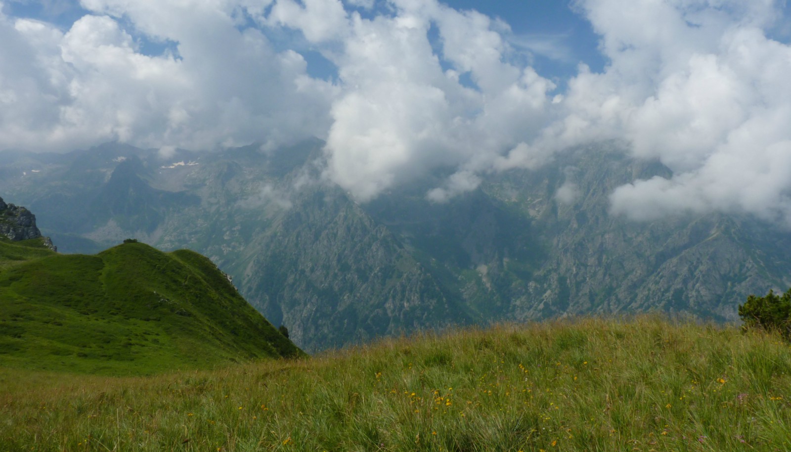 , con lo sfondo degli scoscesi pendii del Monte Carbonè e della Punta della Rua.