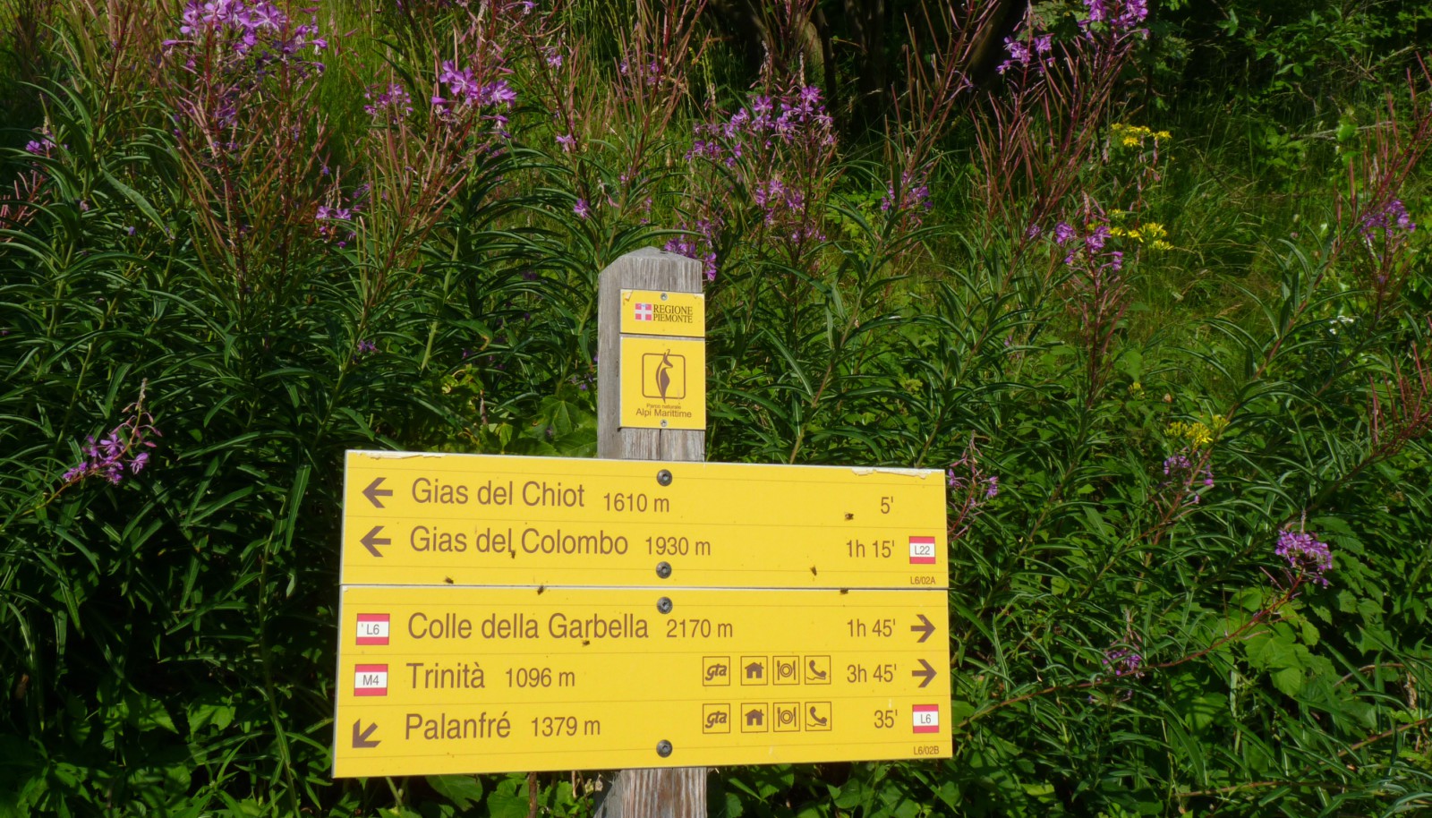 , più piccoli ma comunque ben visibili, con tempi di marcia molto precisi, simili a quelli che si trovano nel Parc national du Mercantour, che confina con il Parco dell'Argentera: così gli escursionisti che attraversano il confine passando da un parco all'altro trovano lo stesso tipo di segnaletica.