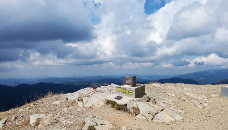 E non manca la classica panchina di legno, su cui è inciso "Parco Antola", dove sedersi e godere dell'ampio panorama offerto a chi raggiunge il monte.