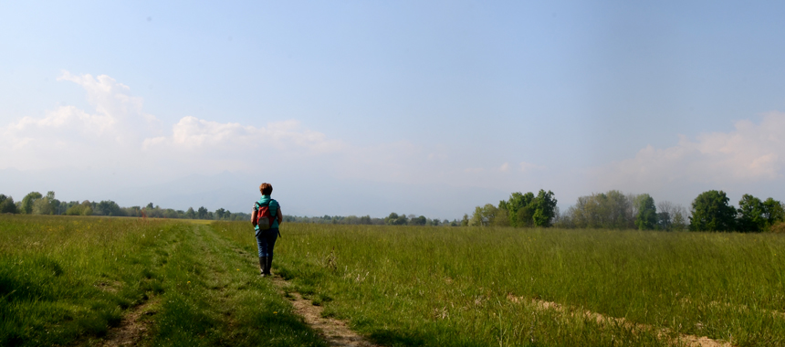 Si continua adesso costeggiando il ruscello (in primavera, belle fioriture e nelle pozze, rane che si riproducono), poi il sentiero si insinua nel letto del ruscello che segue. In caso di acqua una traccia si mantiene poco sopra la riva sinistra. Lo stradello torna a costeggiare il rio e trascurata una pista a sinistra e una sulla destra si giunge ad un bivio dove si piega a sinistra (cartelli). Si guada il ruscello lo si costeggia per un tratto poi giunti a un ripiano si inizia a salire per uscire sull'altipiano che costituisce la Vauda vera e propria . Si prosegue in direzione delle case, poi si piega verso sud e giunti all'incrocio con via XXV aprile si va a sinistra. La strada continua in direzione di una cascina passando accanto ad uno spiazzo-deposito costeggia la cascina stessa e si perde nei campi. Un esile traccia prosegue nel prato e segue il confine della riserva. In prossimità della macchia arborata che si vede in fondo si ritrova la carrareccia progressivamente più battuta e che più avanti scendendo nel bosco ritorna al Rio Serveis, attraversato il quale ci si riporta sul percorso di andata.