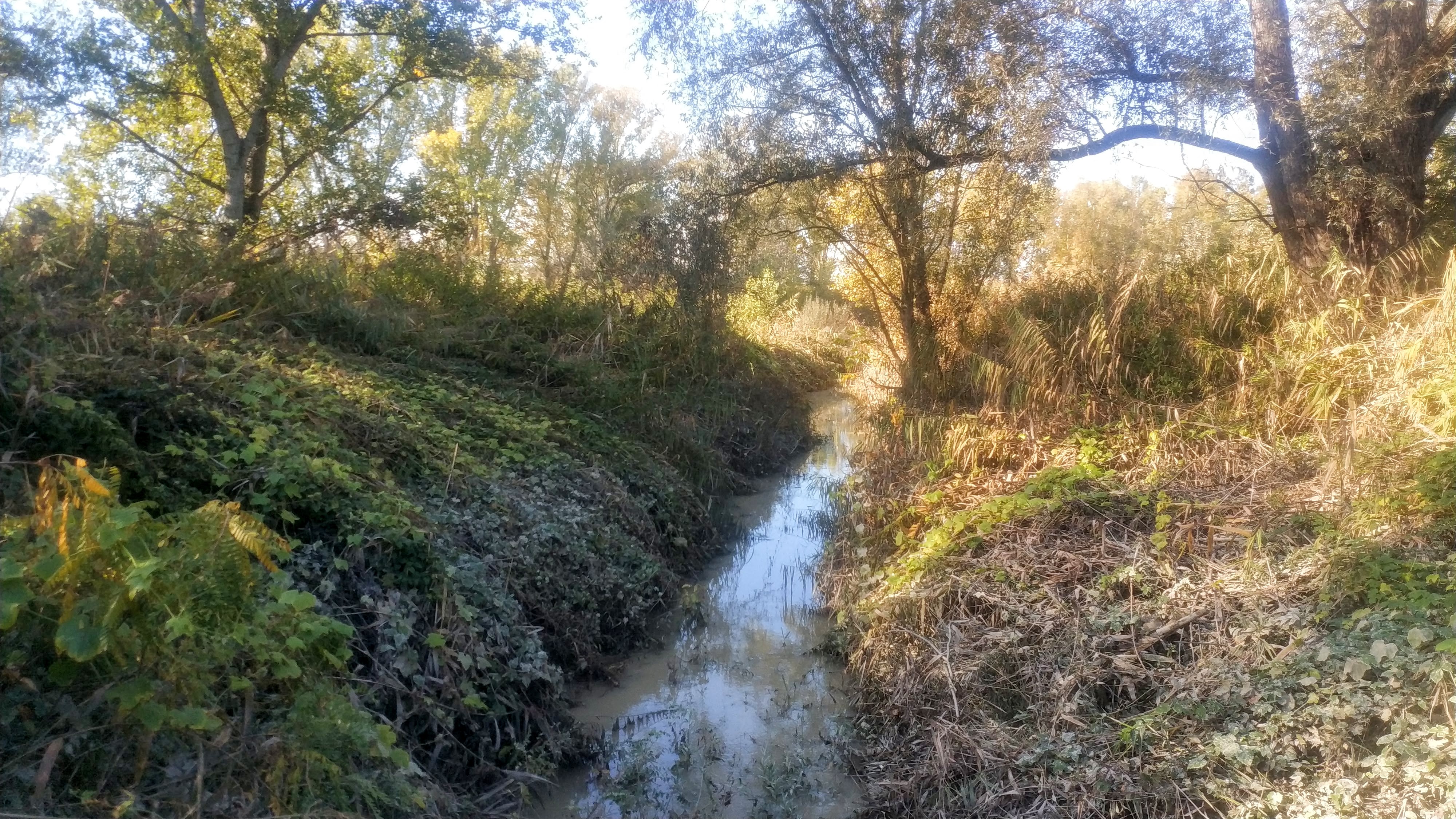 ) che affiancata il torrente, le cui dimensioni dell'alveo lo avvicinano, come aspetto, a un fiume che, dopo le piogge autunnali, trasporta acqua dal color di fango (foto 5). E fuggono volando via spaventati gli anatidi che su queste acque nuotano numerosi.