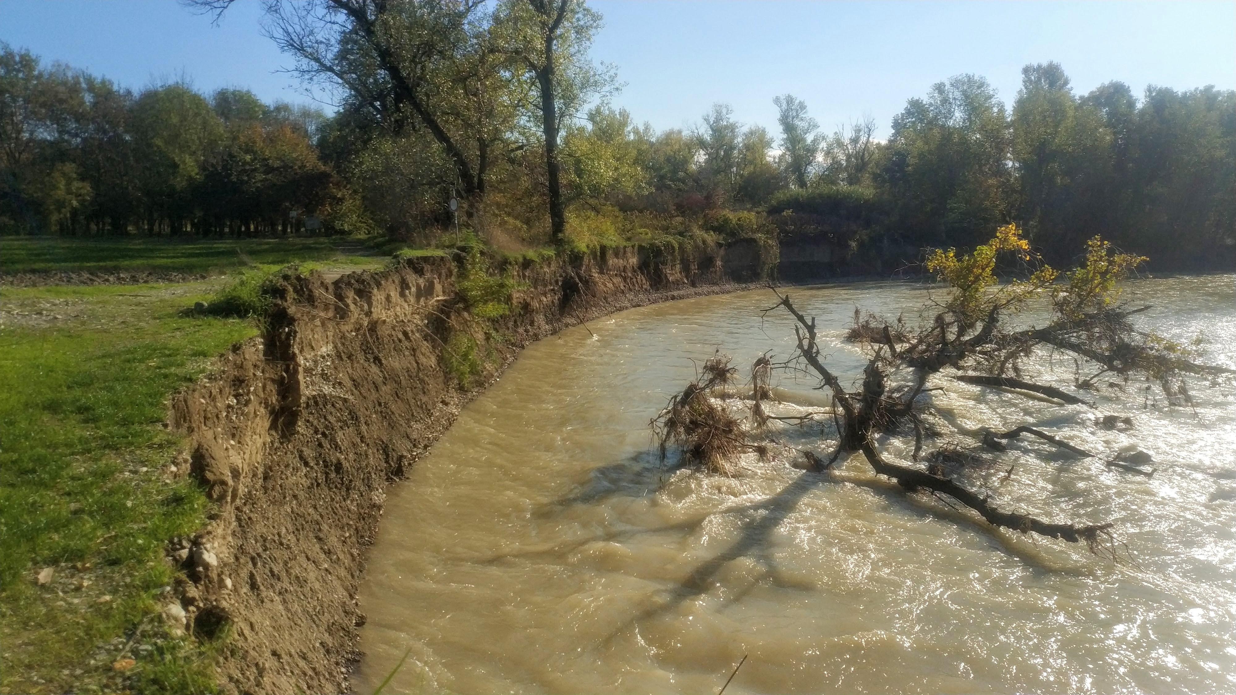 In breve si giungerà in un punto in cui è ben evidente l'erosione della sponda fluviale (