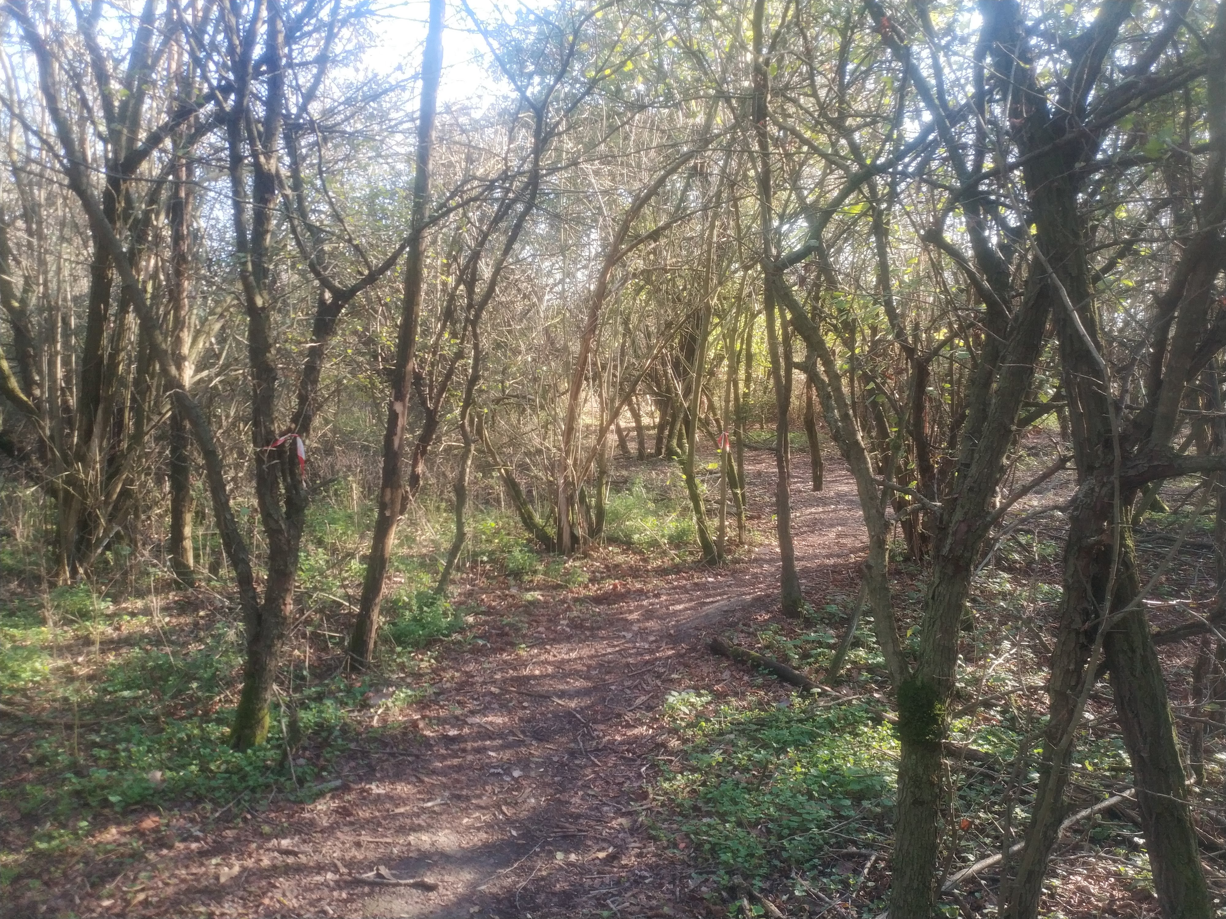 ).Usciti dal boschetto ecco il sentiero che si fa più stretto, abbellito in questi giorni autunnali dai piccoli fiori gialli della rucola selvatica (