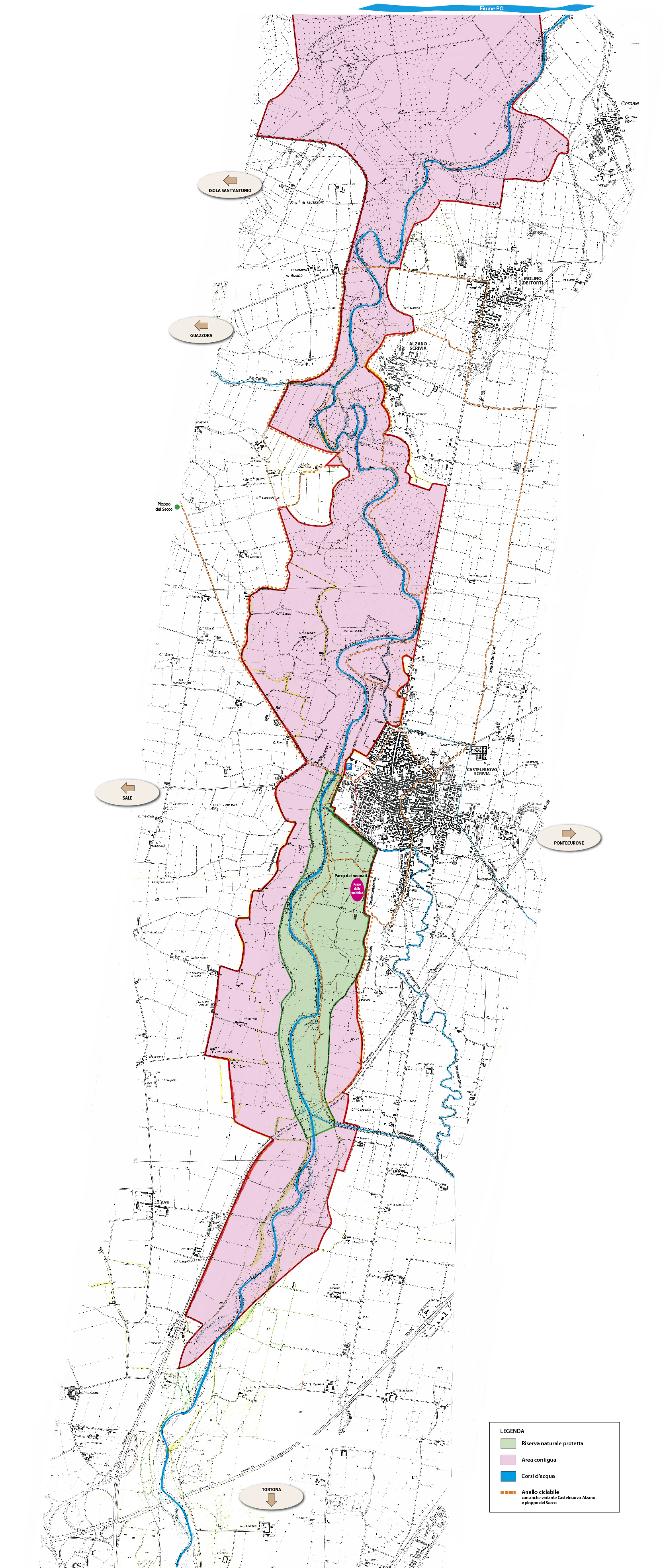 ) che confluisce nella Scrivia proprio a quest'altezza. Tabelle azzurro-verdi segnalano l'ingresso nell'area tutelata, che è gestita dall'Ente di gestione delle Aree protette del Po vercellese-alessandrino (che dal 1° gennaio si riunirà con le aree protette del Po torinese nel Parco del Po Piemontese).