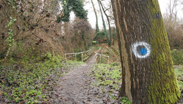 La facile passeggiata di 5 chilometri prende avvio andando verso monte, seguendo il tracciato segnato in blu (