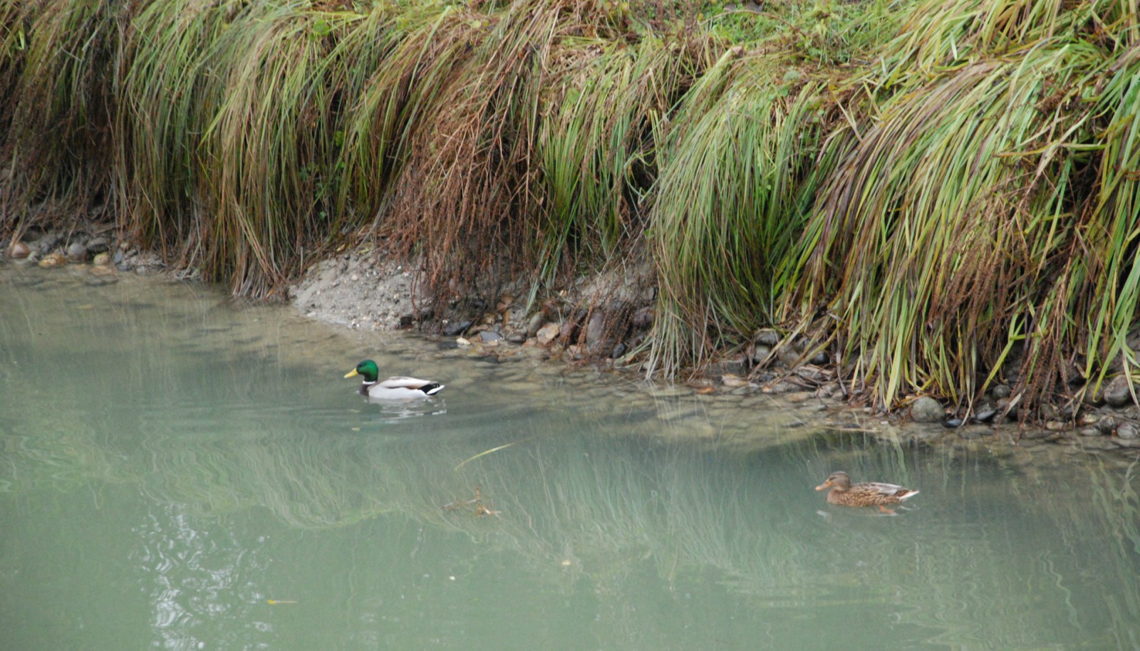 ) per raggiungere l'argine, nei pressi dell'edificio Canale Lanza. Facile osservare nelle acque del canale, che scorre proprio a fianco della via (Strada alla Diga), coppie di Germano reale, il cui maschio è facilmente riconoscibile per il suo capo color verde metallico (