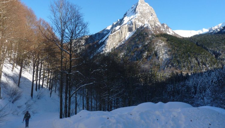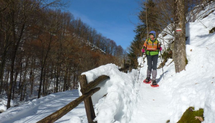 ), che si snoda su una strada nel bosco; è comunque opportuno stare sempre su un lato della pista e utilizzare preferibilmente le racchette da neve, soprattutto se fa caldo e la neve è molle.