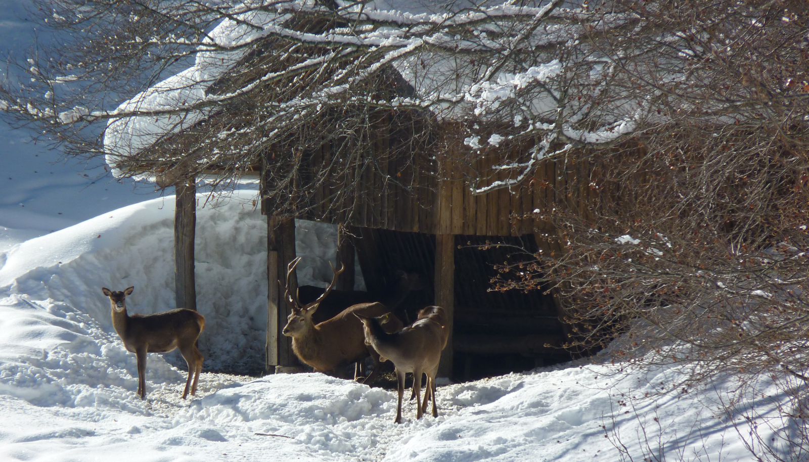 ) che di solito sostano nei pressi di una casetta. Con le ciaspole si può costeggiare in discesa la recinzione, che presto piega a destra, per osservare i cervi da una minore distanza.