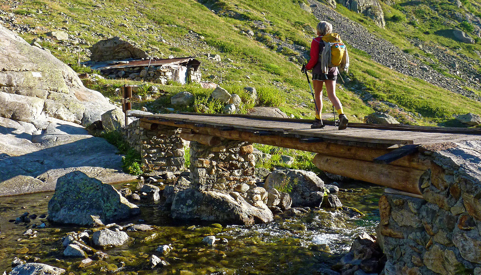 Dal rifugio Dante Livio Bianco si riattraversa il ponte sul Rio Meris