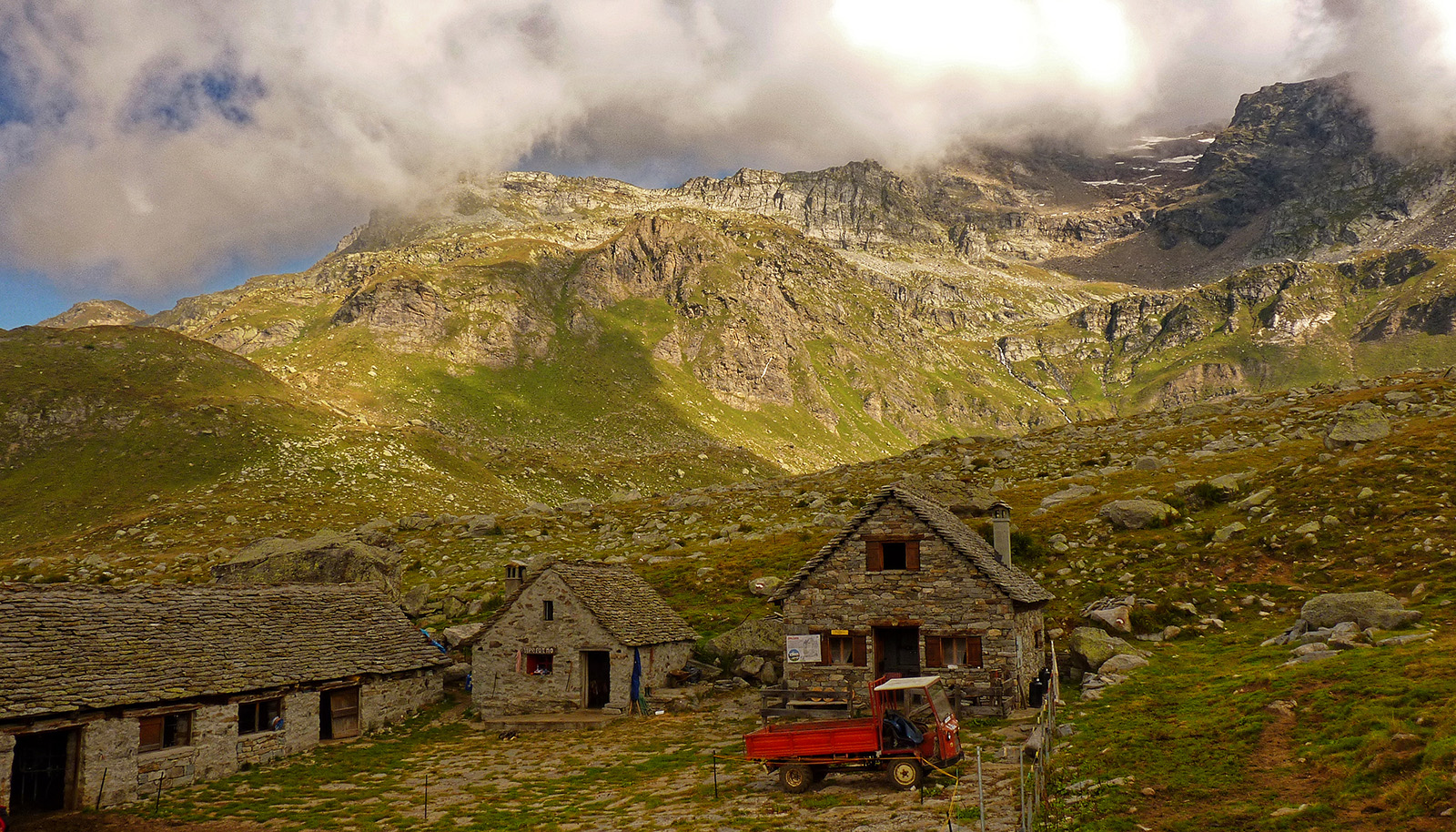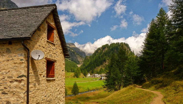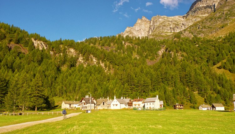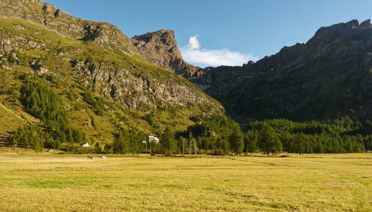 Con una piacevole salita di moderata pendenza si sale lungo il vallone e si arriva alla frazione Crampiolo (1767 m., 0.45 ore)