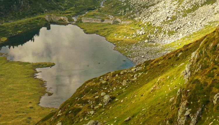 Il ritorno più facile è sul sentiero di sinistra, che riattraversa il rio, costeggia l'estremità nord orientale del lago e confluisce sullo stradello Gta - SI che costeggiando la sponda orientale giunge al bivio del sentiero H14 dove si chiude l'anello e per l'itinerario di andata si scende a Crampiolo.