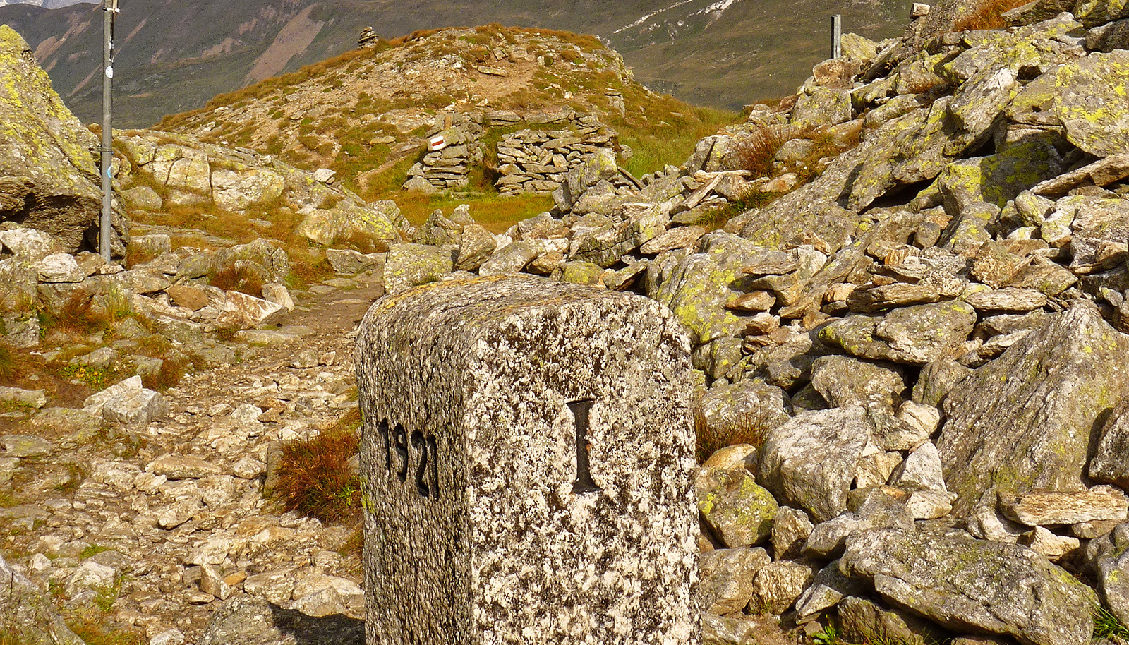 Si lascia a sinistra il ramo per Crampiolo che si percorrerà al ritorno e si prosegue in salita, poggiando subito a sinistra in diagonale, infine con poche svolte fra erba e rocce montonate si arriva alla Bocchetta d'Arbola o Albrunpass (2408 m, 0.15 ore).