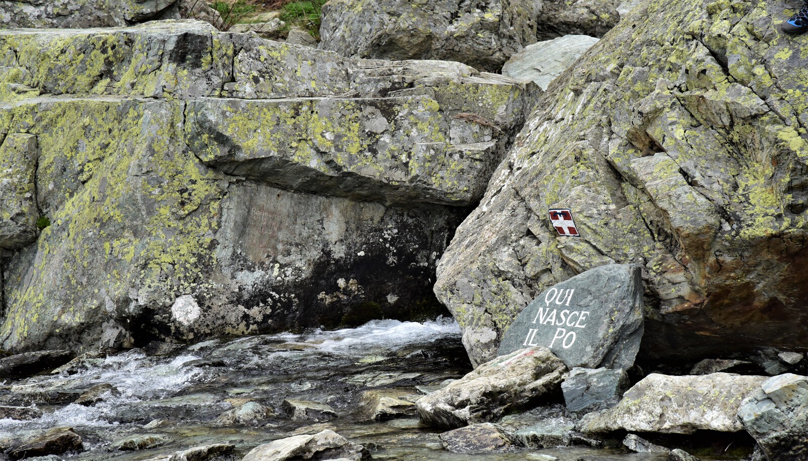muoversi verso la parte meridionale dell'amena distesa prativa fino a superare il rio per mezzo di un grazioso ponte in legno. Oltrepassata la convenzionale sorgente del Po (iscrizione sulla roccia,