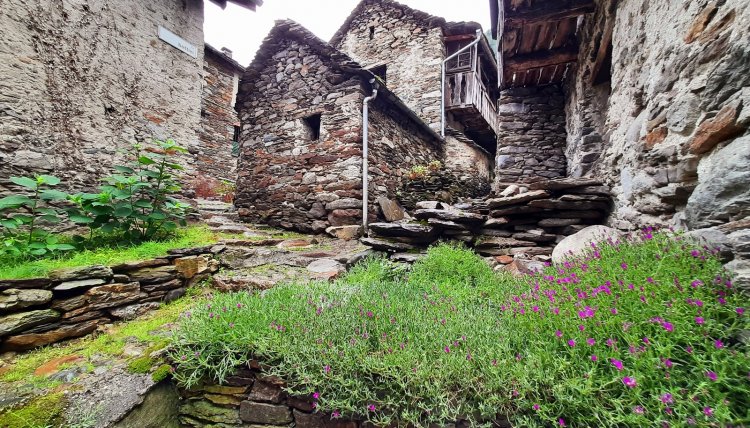 , comune indipendente fino al 1928 e a quel tempo animato da ben 828 persone. Giunti al margine superiore delle abitazioni (Piazzetta della Fontana), tenere la destra e proseguire sul ripido itinerario che prende quota con stretti tornanti lastricati e inerbiti (tacche gialle). Immergersi così nell'autenticità naturalistica della zona che si rivela fin da subito ruvida e selvaggia, regalando però scorci affascinanti sulle insenature orografiche circostanti, dietro le quali l'occhio più attento potrà intuire il Lago Maggiore