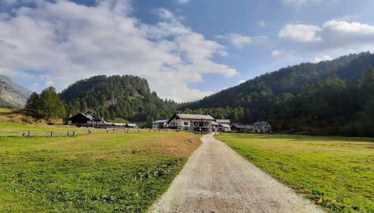 Abbandonata l'auto nei parcheggi antistanti l'Alpe Devero, incamminarsi sulla carrozzabile asfaltata che si muove tra le bellissime dimore alpine rimesse a nuovo