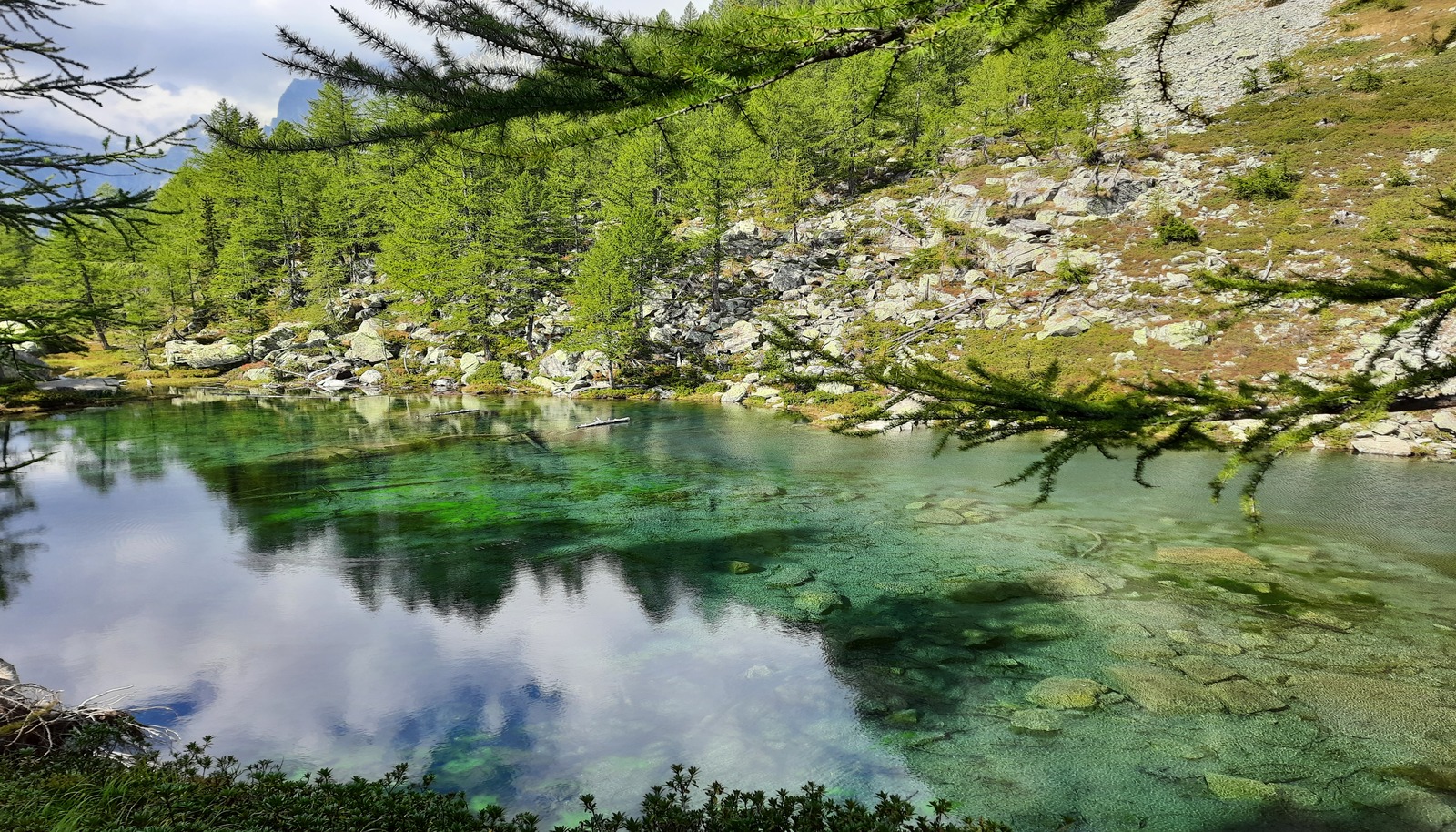 o se svoltare direttamente a sinistra (cartello) incamminandosi sul piccolo sentiero che sale tra mirtilli, rododendri e ginepri e sfociare così al Lago delle Streghe
