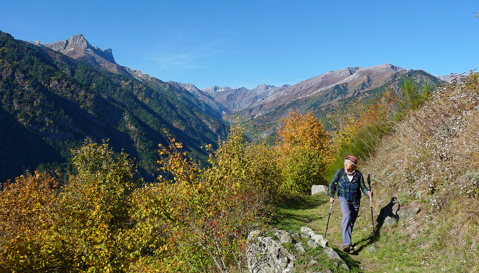 Si passa tra le Grange Cruset, con lo sfondo della Valle Varaita