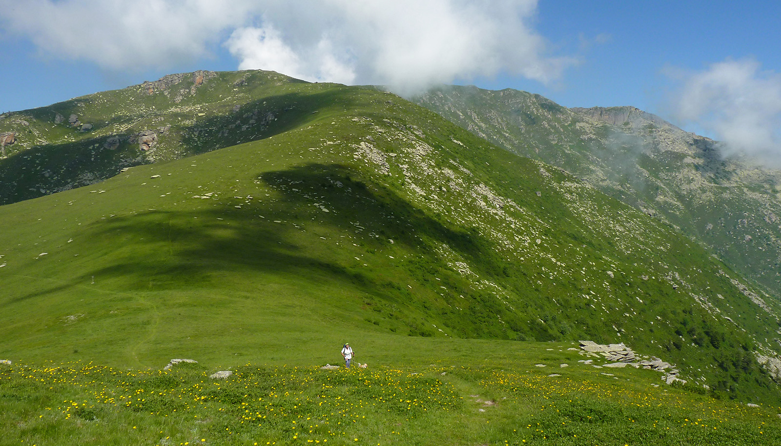 . Per qualche metro è un po' stretto ma ben percorribile e subito dopo si affaccia dall'alto sul vasto ripiano erboso del Colle Bernardo (35 min.).