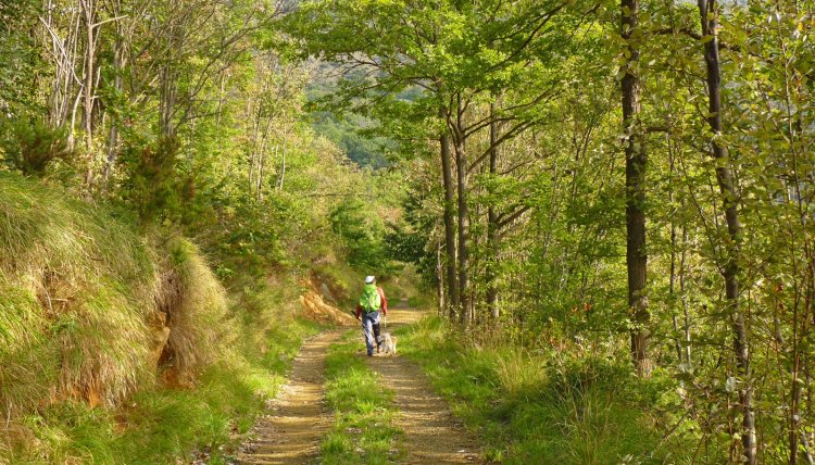 Si va a destra, sullo stradello che va in lieve salita a mezza costa nel bosco