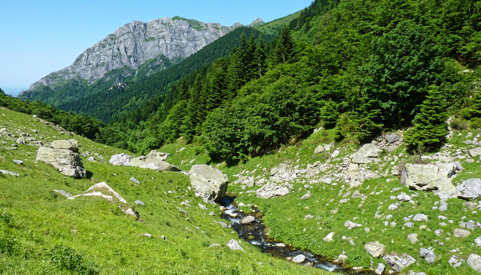 , caratterizzata da una vegetazione di pino mugo che cresce fra le rocce calcaree e in cui si riconoscono alcuni inghiottitoi.